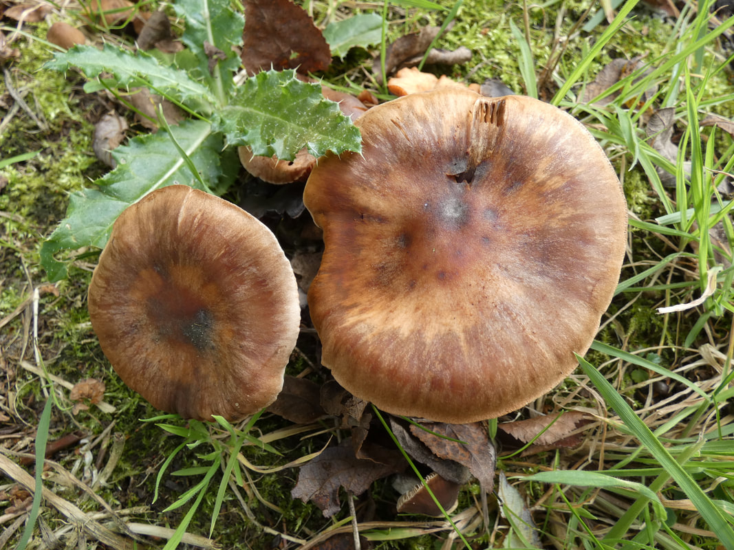 Girdled Knight ( Tricholoma cingulatum) in large numbers under willows in South Wood , associated with willow, can come in quite quick to new plantings, I don't see it that often. Photo: Tim Dorrington