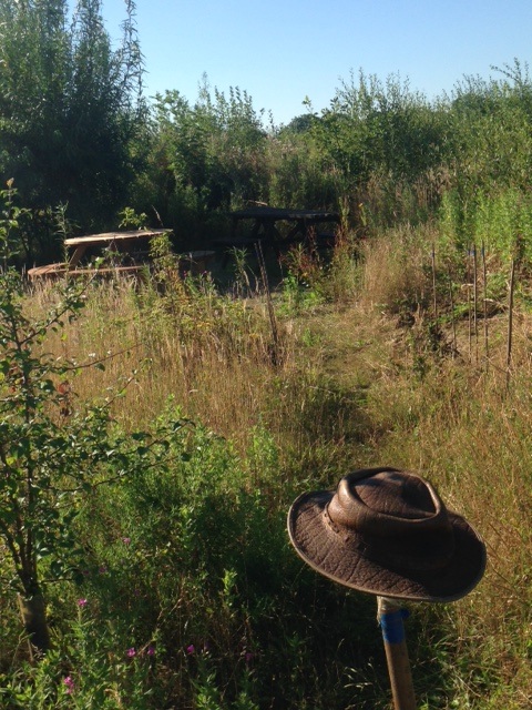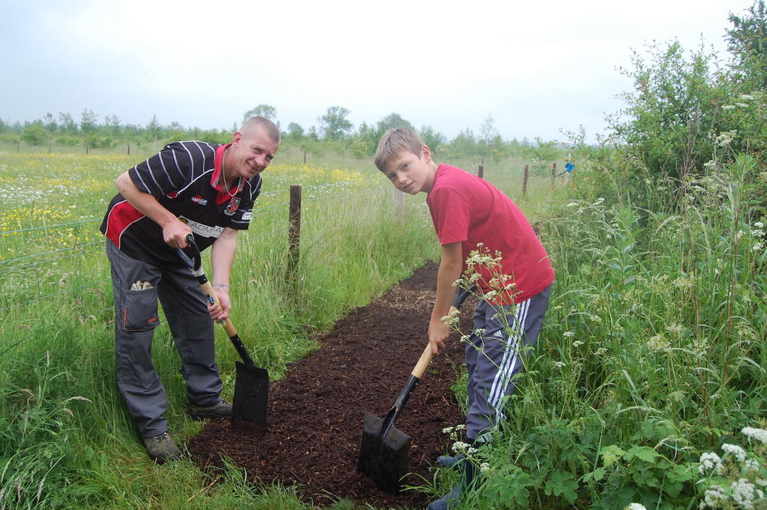 A lot was achieved: ditches dug, benches relocated, the willow tunnel tucked in, musk mallow planted, wood chip distributed.