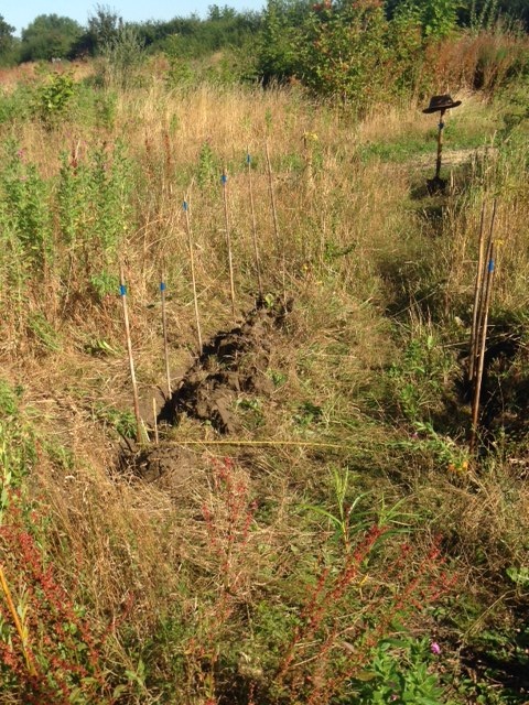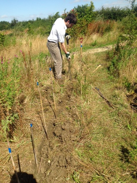 The latest work day took place on Sunday, 7th August 2016. Despite the absence of many potential labourers on their holiday, a baker’s dozen of NWT and LCV stalwarts turned up as well as a local lad trying voluntary work for the first time. The weather was glorious, a great advertisement for Lincolnshire ’staycations’. There were three main jobs, all in the more public parts of the South Wood .