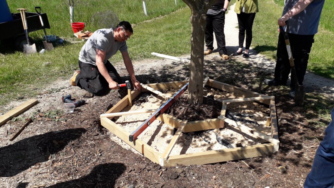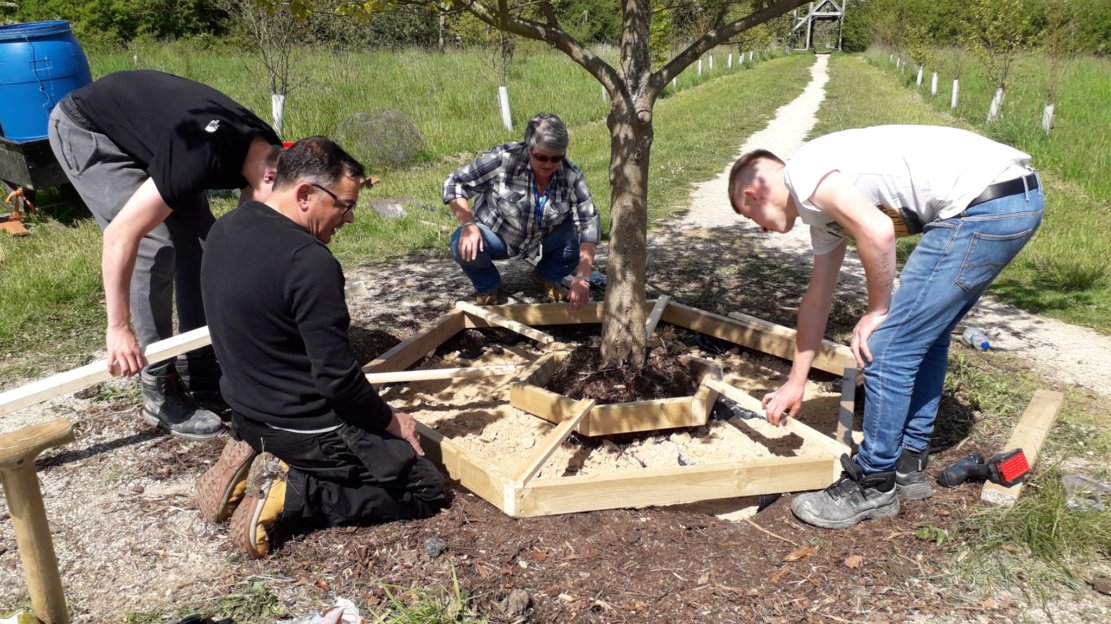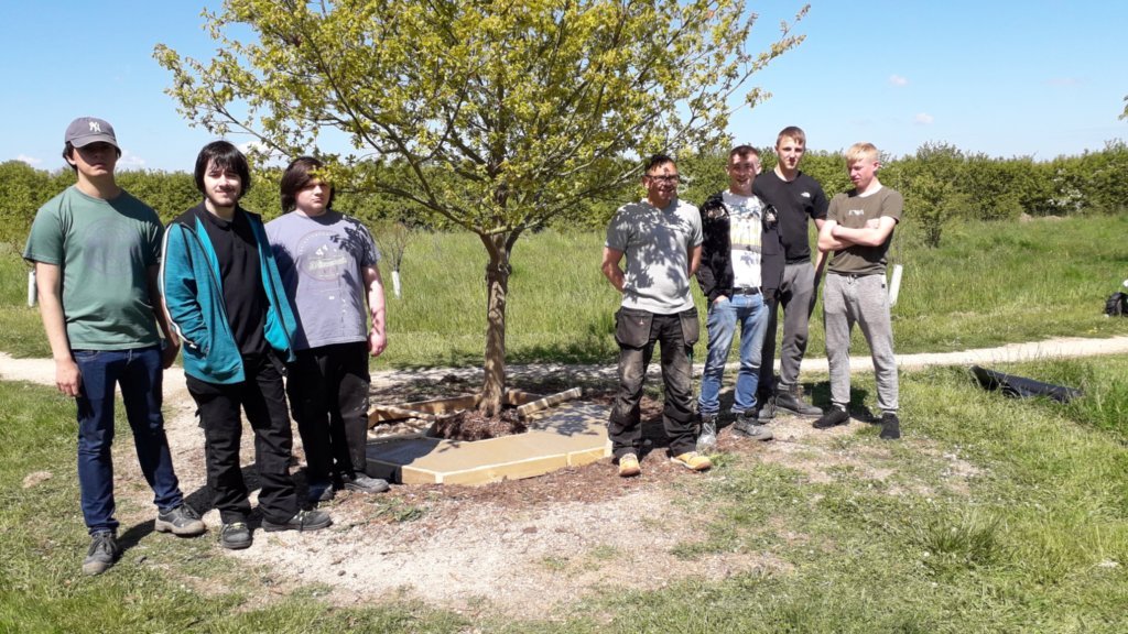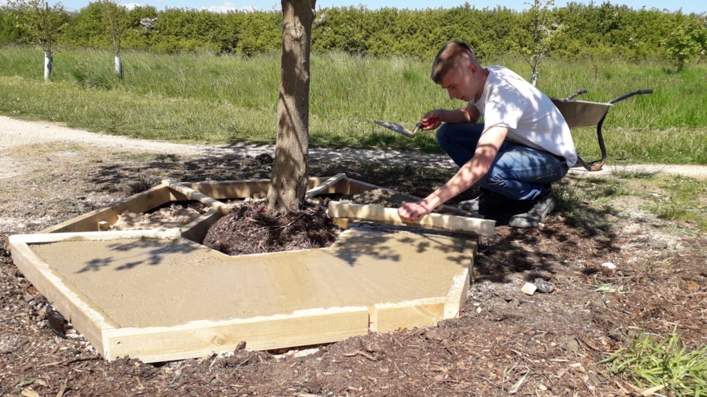 On Thursday 16 May, a group of Lincoln College construction students created the concrete base for the soon-to-arrive hexagonal bench that will go around the Monk Oak. They chose Ashing Lane as the place they wanted to volunteer and a lovely job they have made of the base - thank you all!