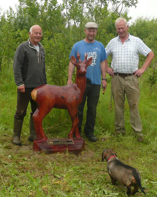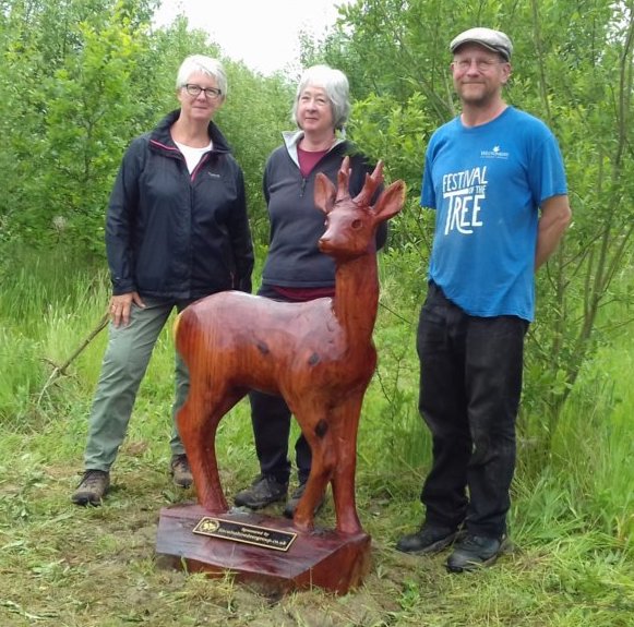 More pictures of the roebuck now installed in Monks Wood, including the sculptor and members of the Nettleham Woodland Trust management team and supporters.