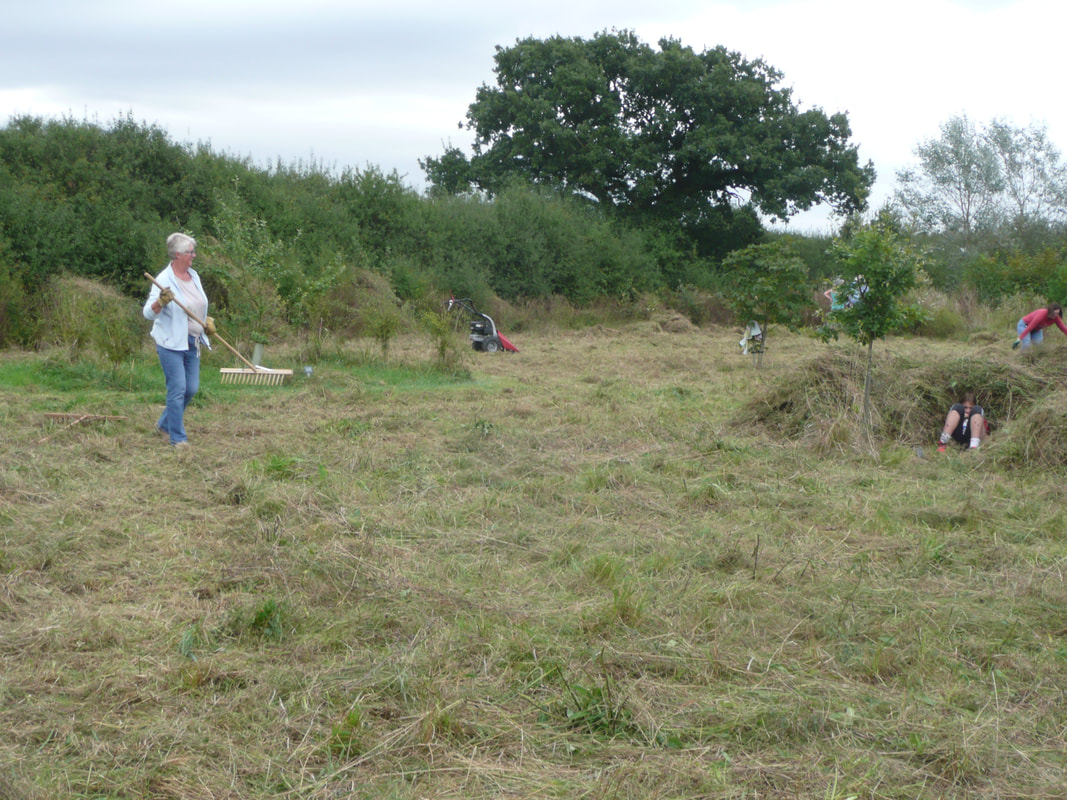 Raking off and removing the "hay" helps to reduce the fertility of the soil, encouraging wildflowers rather than grass and nettles.